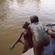 川にダイブしている像なので、視線を上げて歩いていると見落としてしまいそうでした。