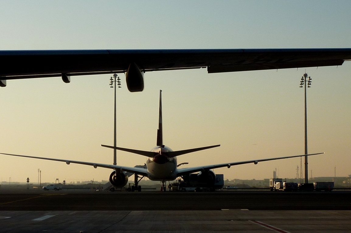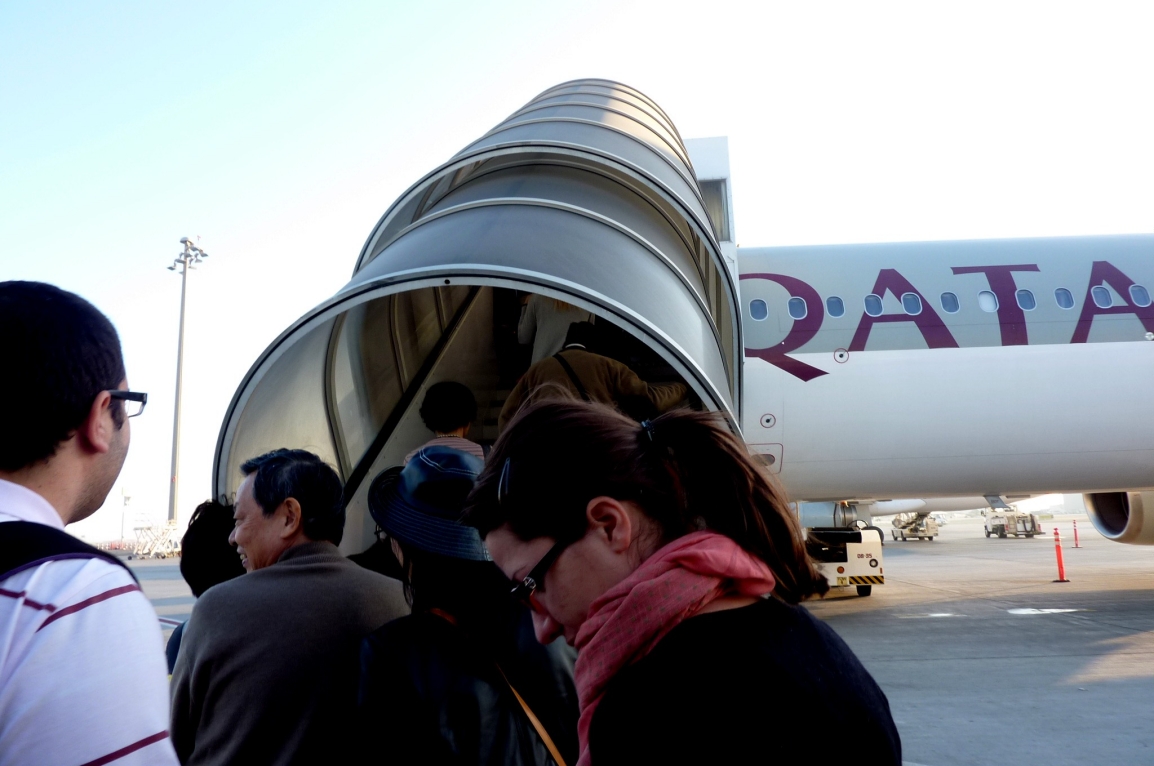 飛行機の乗り降りは全てタラップを使用、バス移動なので時間がかかることかかること、