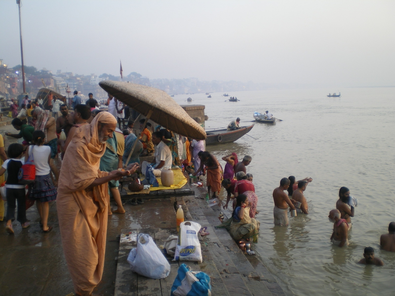 ボートには是非早朝、もしくは夜に乗ってください。早朝は日の出がとてもきれいに見えますし、夜はガートでしているプージャ(お祈り)が見え、灯がユラユラと揺れてとても幻想的です。ボートは交渉が大事なので、ご自身の勘で信頼できるボートマンにお願いしてください。以前対岸までに行った際、帰りにガートまで帰るときに料金トラブルになり嫌な思いをしました。あとプージャが終わった後はガートを歩いて、ホテルに帰るのは危険なのでやめてください。ガートは薄暗く、暴行事件も多くあるので、多少面倒でも路地を歩いてホテルに帰るほうが安全です。