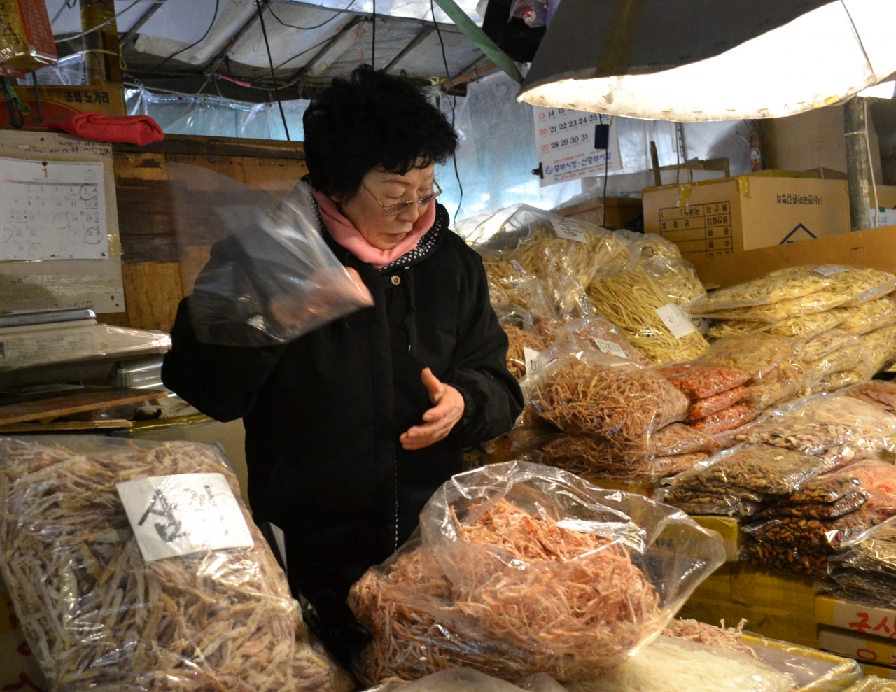 広蔵市場や南大門市場のような人の多さやゴチャゴチャ感は無いけれど、魚や乾物を中心とした地元民が利用する市場。