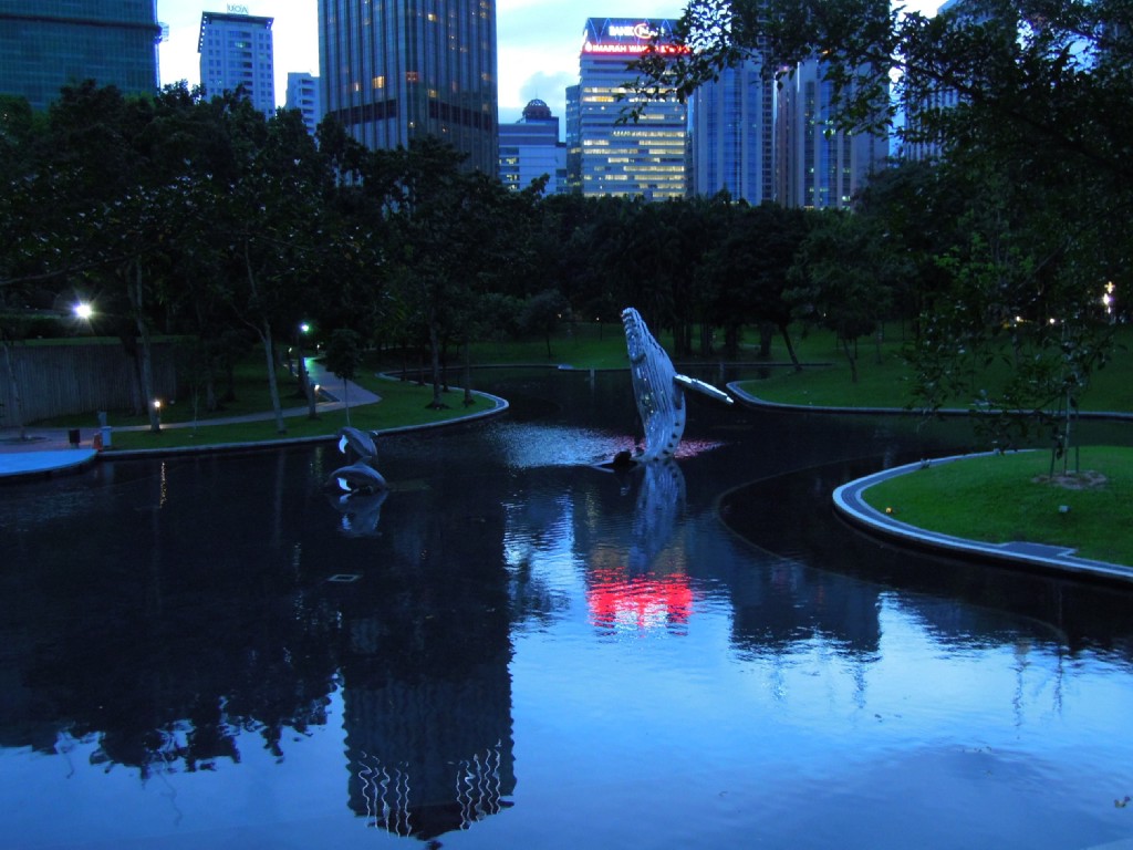 昨年もKLCC公園を楽しみましたが、今年はホテルをここから徒歩10分位のところにとったので毎日楽しみました。特に夕方17:00を過ぎるとジョギングやウォーキングを楽しむ人々でにぎわい公園内1周すると1.2Km程度なのでちょうどいい感じです。また昨年は池の噴水は無色だったのに今年はカラー照明でよりきれいになってました。