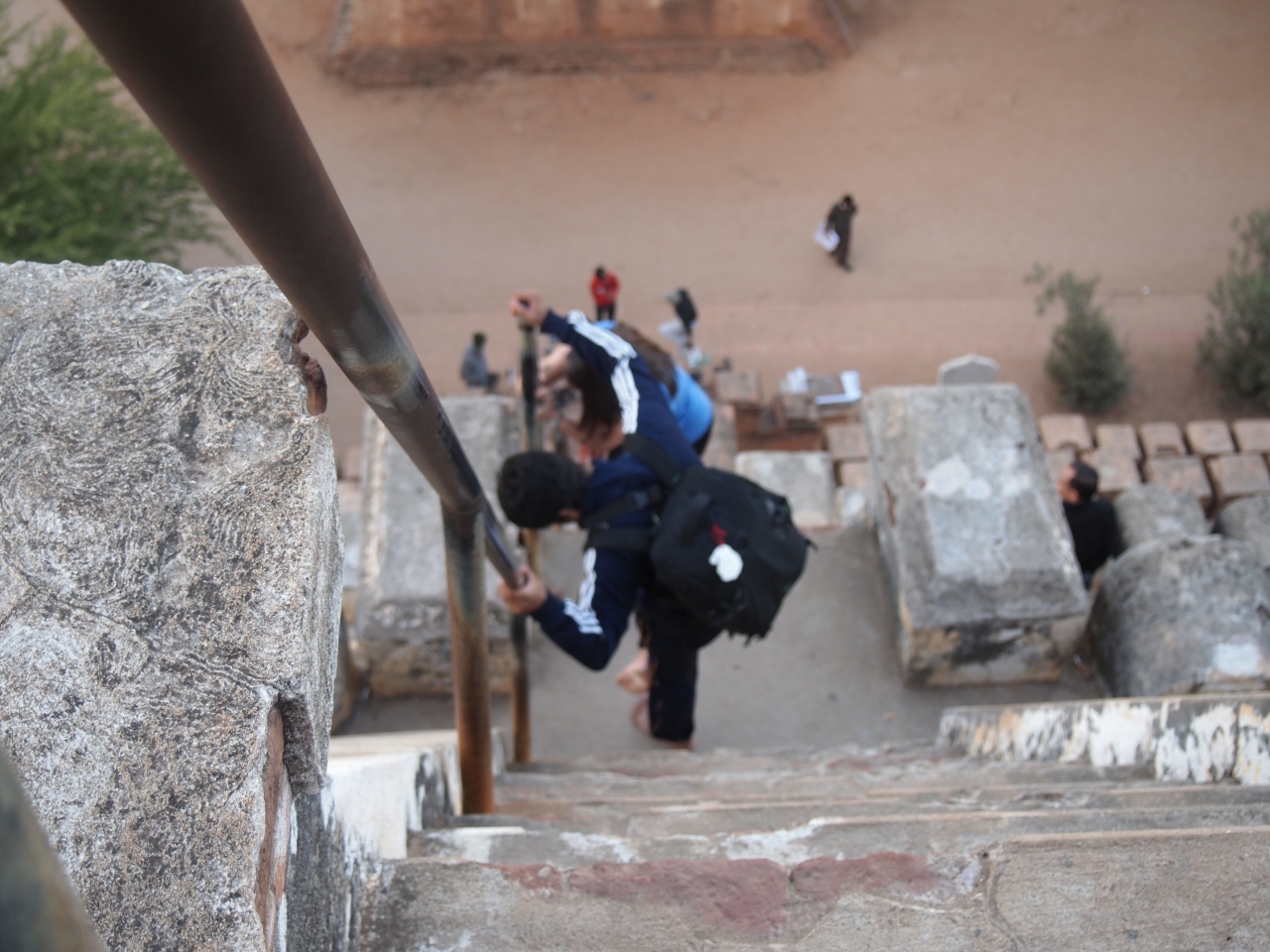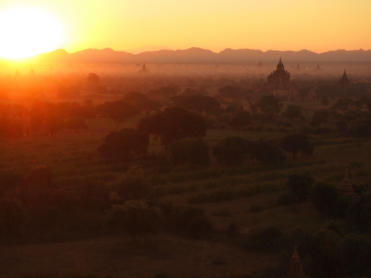 サンライズを見に行きました。朝もやの中に浮かび上がってくる仏教遺跡群は絶景でしたが、日が昇る前の暗い中、急な階段を上るのは大変でした。また、上ってからも高いところで暗くて周りが良く見えない状況というのは高所恐怖症気味の私にとっては怖かったです。でも周りが明るくなり日が昇り始めると怖さを忘れました。