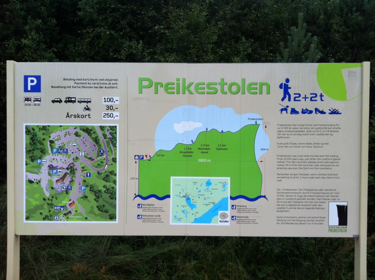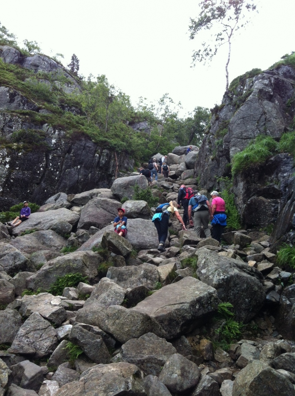 プレーケストーレンはガイドブックにあるように、大人の足で片道ちょうど2時間の山登りでした。