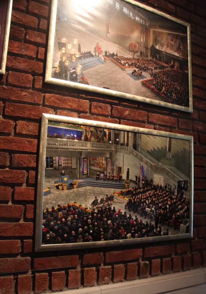 ノーベル賞はスゥェーデンのストックホルムと思っていたら何故か”平和賞”だけはオスロで行われる(ノーベルの遺言らしい)。最近ではアメリカのオバマ大統領の受賞が有名で表彰式およびスピーチの写真はその時の写真です。