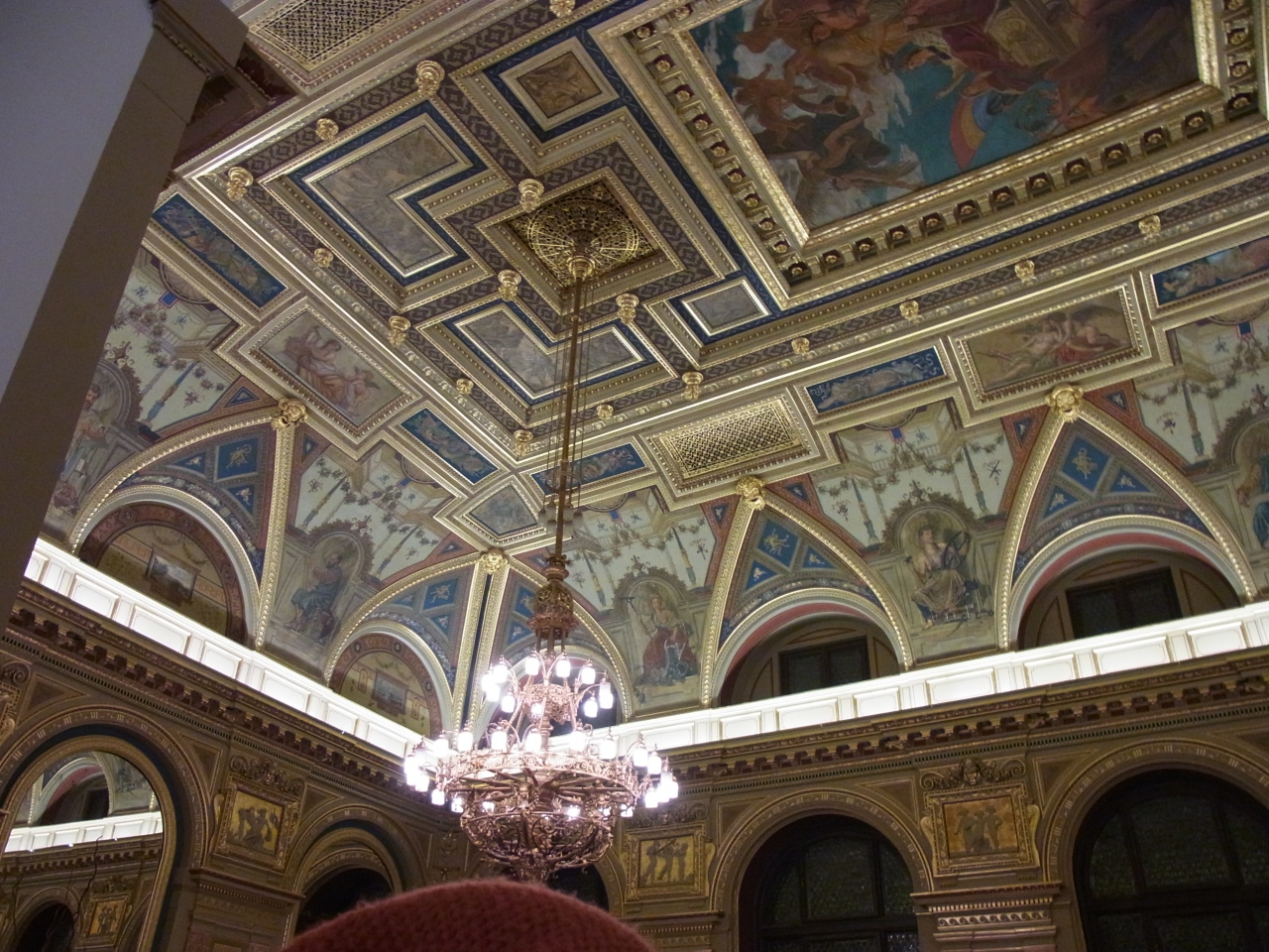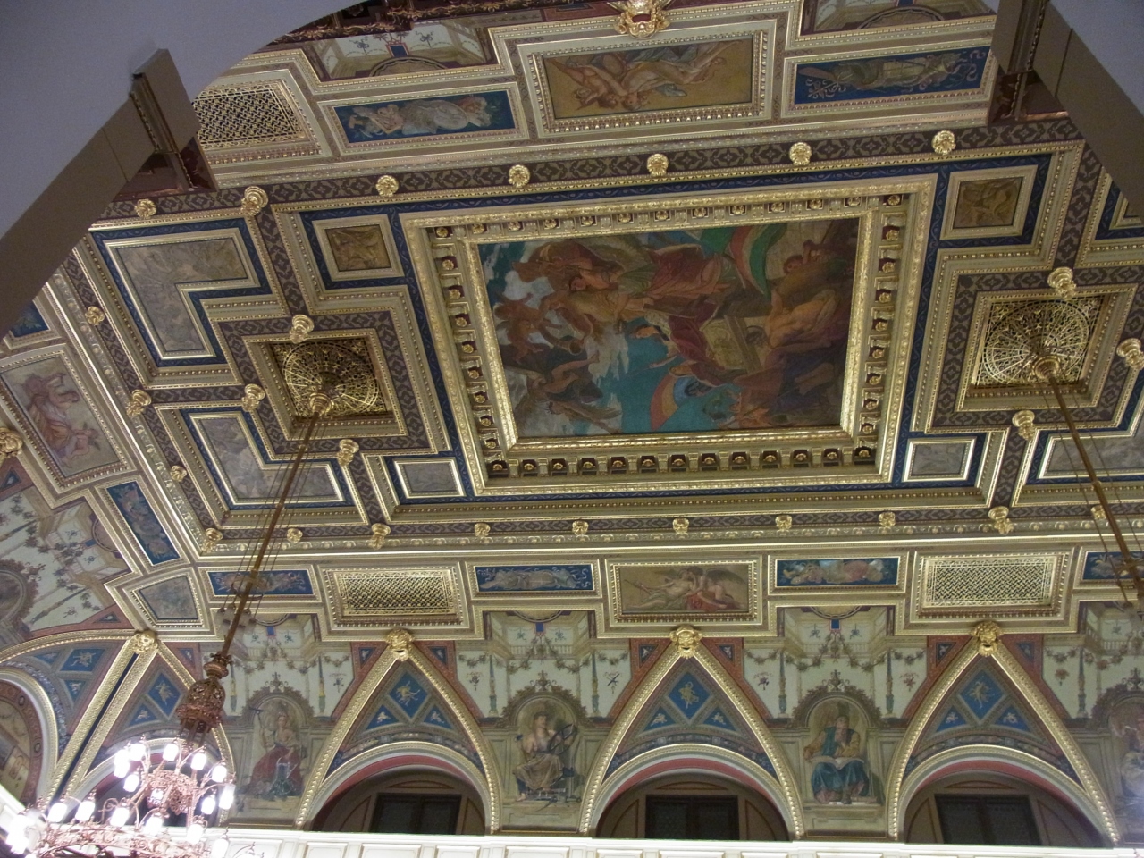 喫茶店の天井は、装飾画とシャンデリアでかなり豪華。