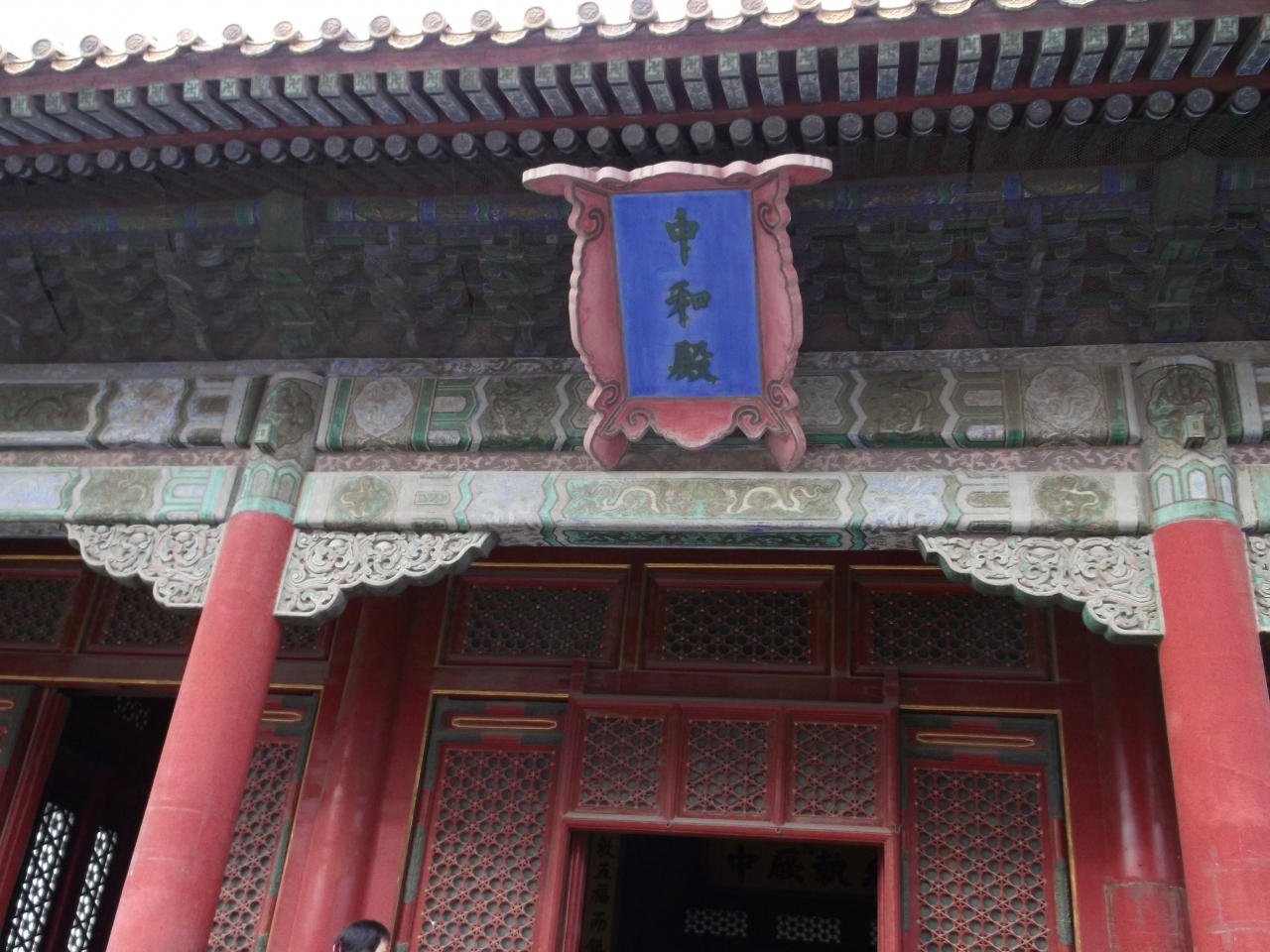 明の時代に建てられ、その後3度の火災や改称を経て、清の時代 に現在の名称になった中和殿。中和殿は、明の時代に太和殿で行われる大典の前に 皇帝が休息する場所となっていたそうです。正面と 玉座。屋根の上の宝珠と、玉座の黄色が綺麗ですね。