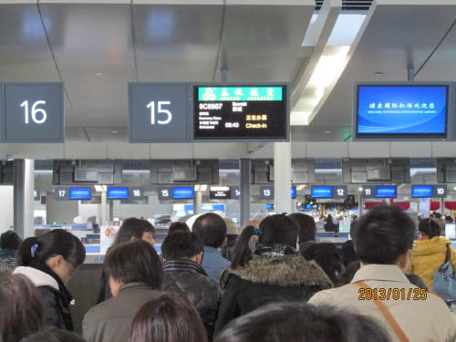 春秋航空カウンターが12年12月18日より第一ターミナルから第二ターミナルへ移動となりました。航空会社のグループ別にカウンターを振り分けるそうです。後発の春秋航空のカウンターは第2のJとなり向いのカウンターは春秋航空の国内線カウンターです。