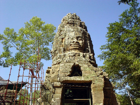 タ・プロームの西門塔の人面塔はバイヨンの人面塔とそっくりだ