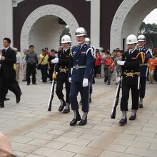 衛兵の交替式が見ものです。衛兵が更新するのにたくさんの人がついていくのも