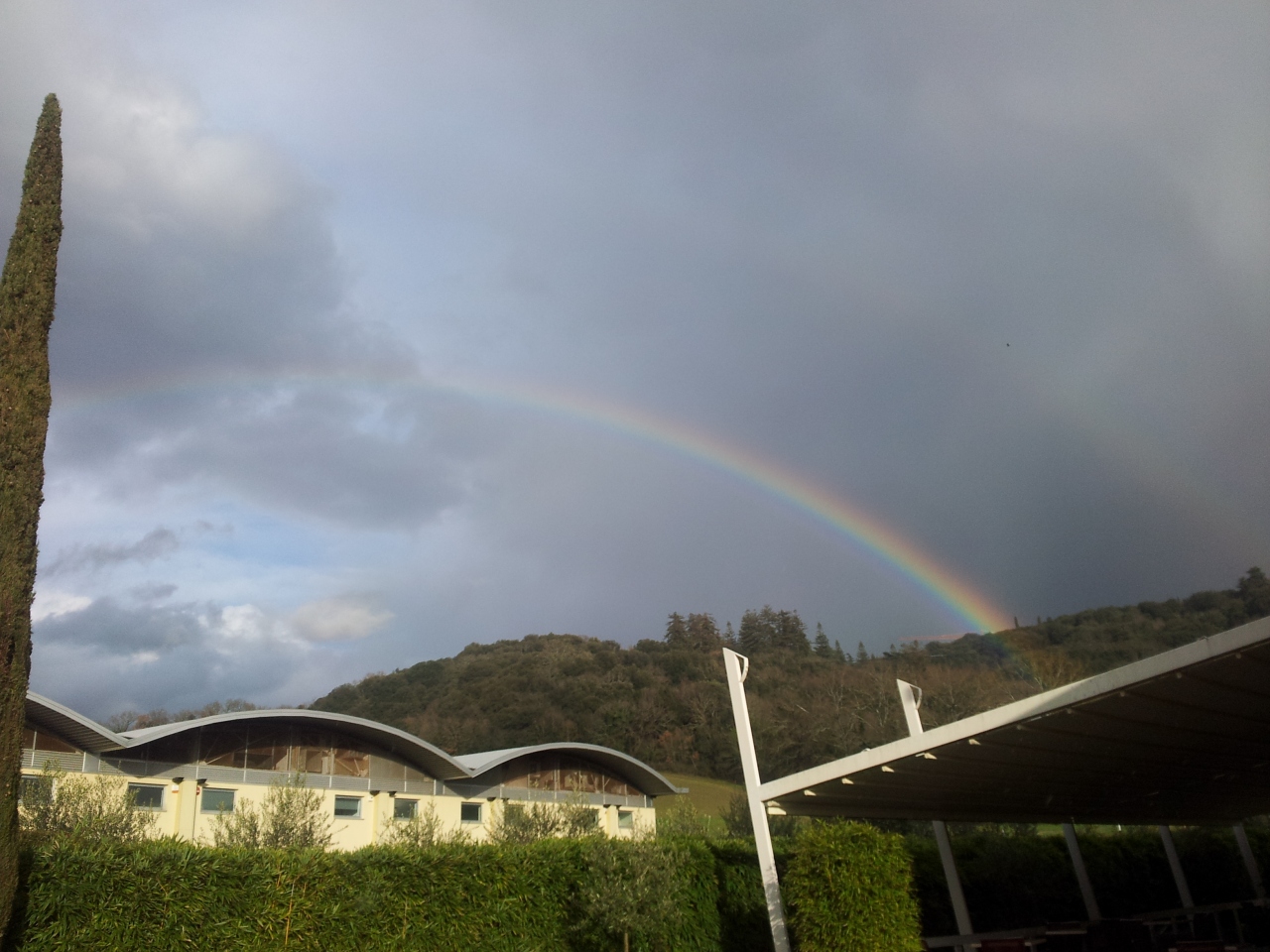 雨がふったりやんだりの不安定なお天気のなかとっても大きな虹が出ました。