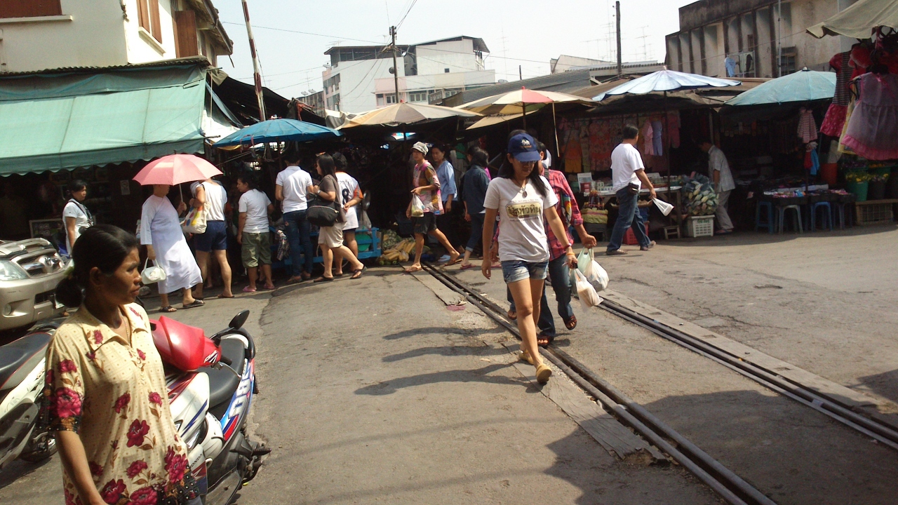 戦勝記念塔からミニバス(ロットゥー)で行きました。乗り場がわからず苦労しましたが、サークルの北側になります。「メイクロン」では通じませんでした。「メイコーン」ならほぼ通じます。片道70バーツで1時間チョイで到着。観光客から地元民まで混雑しています。トイレは係りがいる有料トイレがいくつかあり清潔なので心配要りません。紙は自分で用意してください。