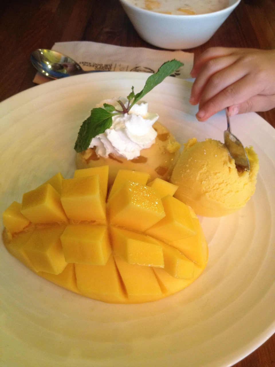頼んだのは、マンゴー・タンゴ。お店の名前にもなっているメニューです。マンゴー、マンゴー・プリン、マンゴー・アイスの組合せ。とろけるような甘さです。美味しかったです。