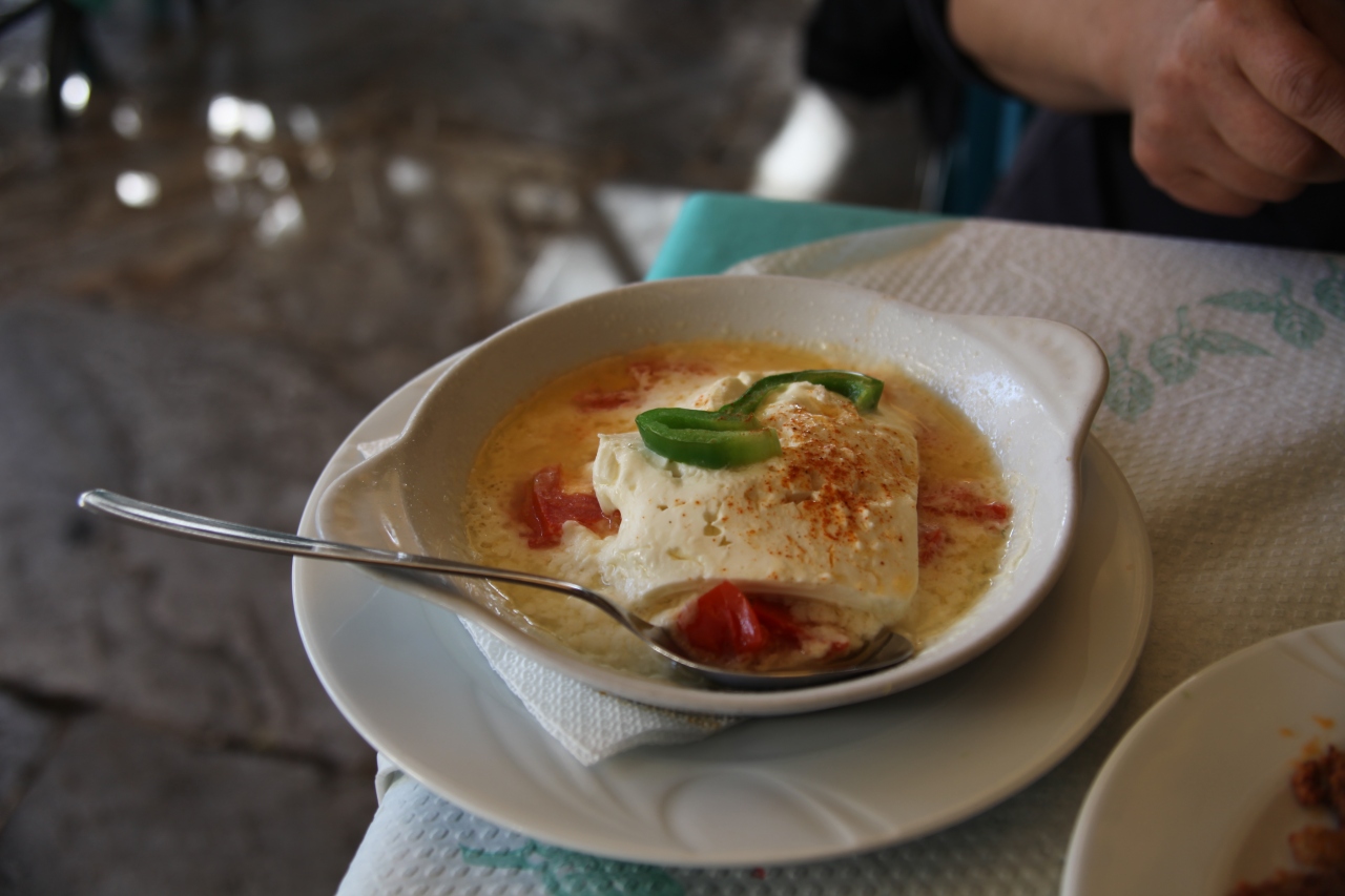 フェタサガナキ1皿(出てきたものは生チーズだった。単にサガナキというとチーズを揚げたもの)