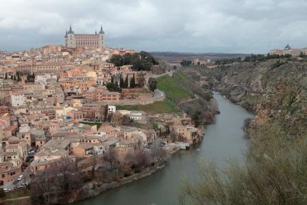 川の手前の展望台から眺めるトレドの全景も見事だ。