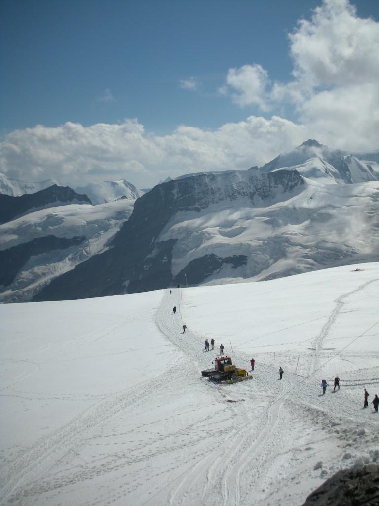 ユングフラウ鉄道は、鉄道が電化されて間もない1895年に着工し、1912年に開通しました。19世紀、交通網の拡大にともなって鉄道旅行が人々の余暇の過ごし方の一つとなった中でスイスへの観光客は増え、19世紀後半より観光目的の登山鉄道がスイス各地で敷設されることになったそうです。アイガー、メンヒ両山の山中をトンネルで通過するこの鉄道は、16年の歳月を要しました。 工事は真冬も休み無く続けられ、冬は約300人の労働者を食料ごと運び上げ、氷河のクレバスで食料を貯蔵しながら春まで凌いだと言います。 ヨーロッパ最高地点の駅であるユングフラウヨッホ、何としてもそこまで鉄道を繋ごうというスイス人の執念を感じます。実現不可能と思われていたこの夢の鉄道を現実のものにしたのは、アドルフ・グイヤー・ツェラーの設計(トンネルで貫く)だったそうです。