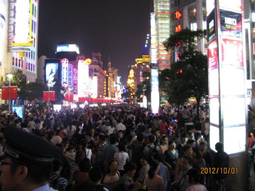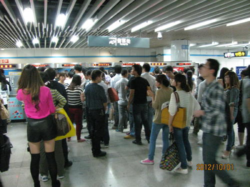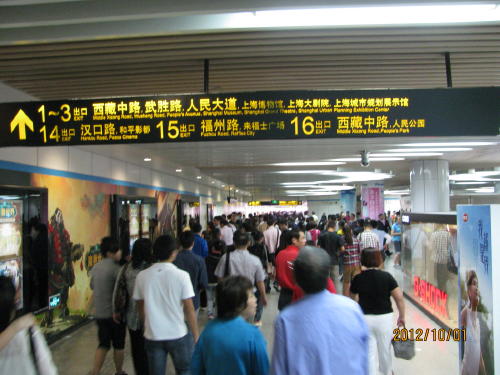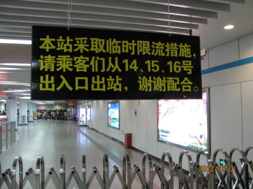 南京東路の人出も最高、人の流れに逆らわず歩くしかありません。どの店の中も人で一杯、買い物をするのも大変です。混雑が激しくなる夕時16時から地下鉄南京東路駅は封鎖となり、2号線と10号線共に停車せず通過となりました。