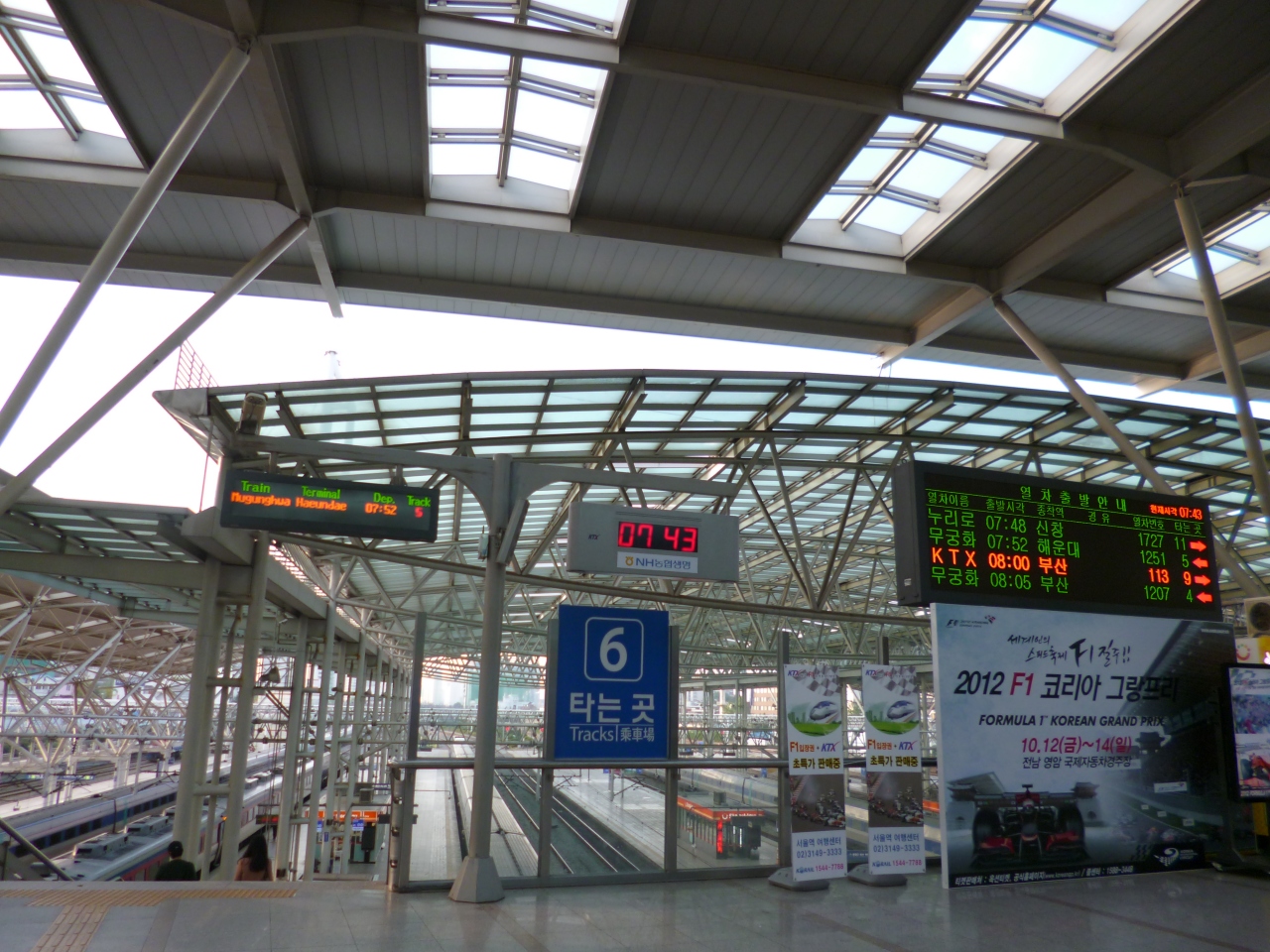 混雑は時間帯にもよるのだと思います。ソウル駅から水原駅まで国鉄でいきましたが、切符販売のところもすいていました。ただ帰りの水原駅からは激混みでした。とてもきれいな駅で、表示も英語などでも電光掲示されるのでそれをチェックしてホームにいけばよいという感じです。近代的できれいな感じでした。