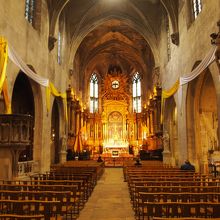 内部は3廊式になっています。入り口扉の胡桃の木の彫刻などがみるべきものです。