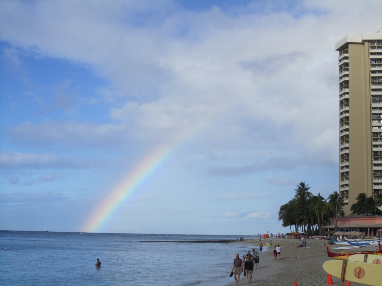 ホノルルに来たら絶対散歩してください。せめてシェラトンとニューオータニの間はどちらの方面から見ても絵になります。水もとてもきれいでこれぞハワイ!!と実感できます。海側と町側でまったく違った世界観が楽しめます。運よく虹も見れるかも知れませんよ。