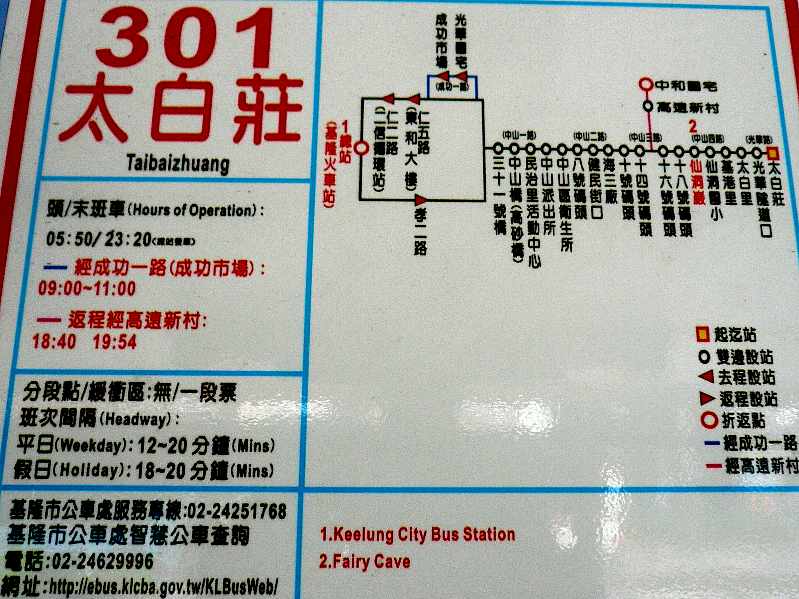 - 基隆駅前より市バス301太白荘行きに乗車し、約20分で「仙洞巖」下車