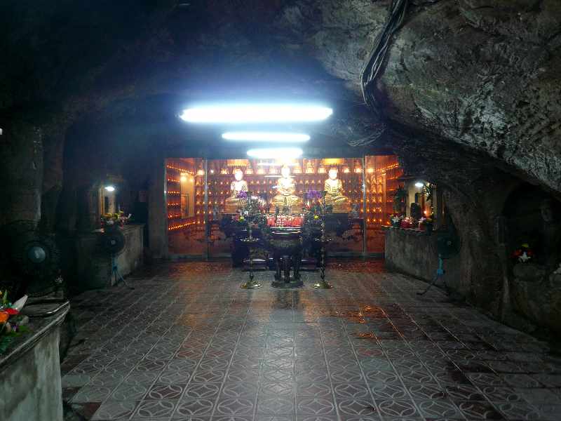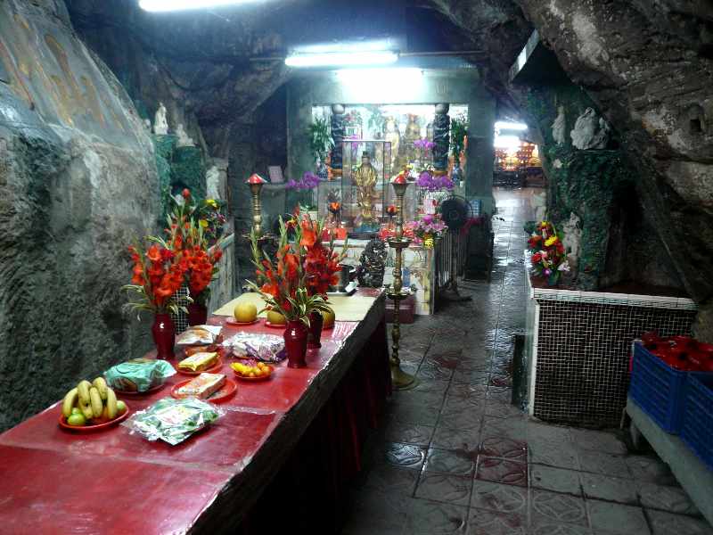 洞窟の深さは30mくらいあると思います。洞窟の壁面にはいろいろな仏像のレリーフが彫られており、洞窟の一番奥には本尊の仏像が安置されています。このご本尊のお顔には見覚えが…、志村のバカ殿に似ている…と思う。(^_^;