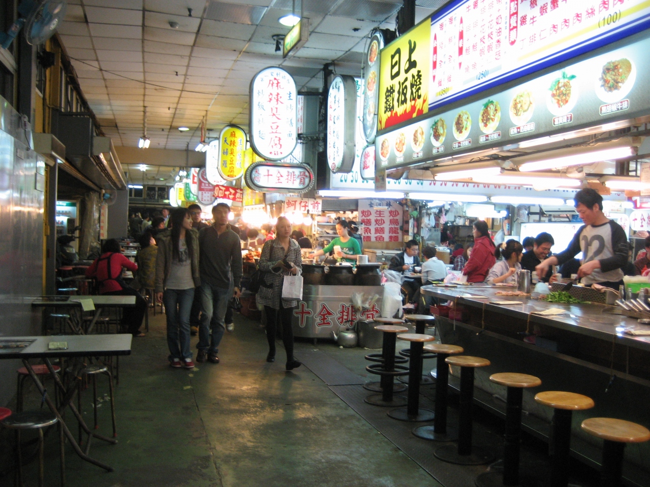台北に初めて行った日の夜に行きました。食べ物の屋台は、大きな体育館のような建物の中に集まっています。政策でそうしたみたいですね。最初は物珍しく歩き回りましたが、入った牛肉麺の店が外れでした(味がやけに薄く、翌日訪れた老舗の店とは段違い)。地下鉄の駅のすぐ側なので、迷うことはありません。屋台目当てなら、饒河街観光夜市の方が面白いでしょうか。