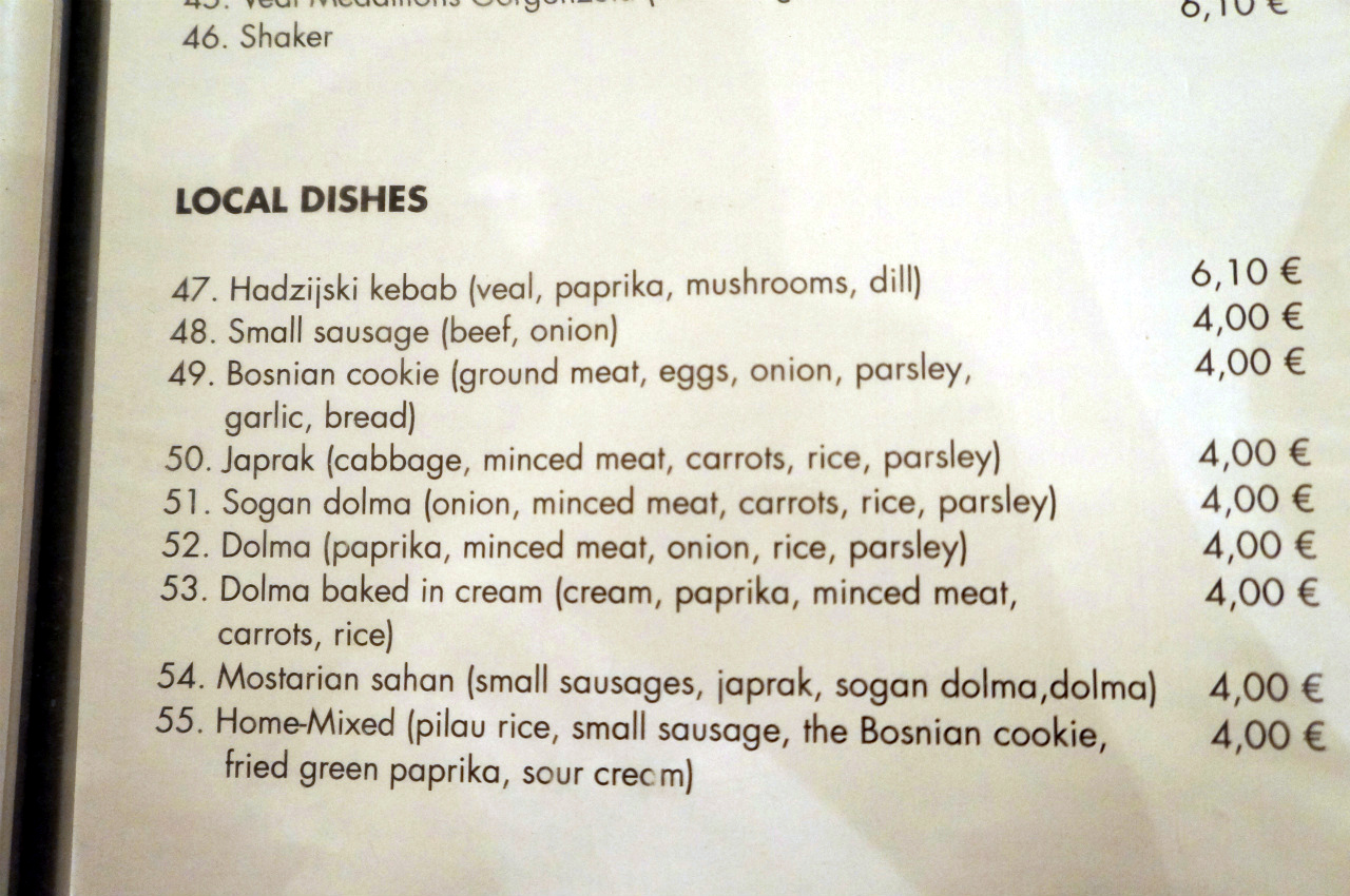 ボスニア地方の郷土料理はとても味付け良く、日本人の口に合うと思います。メニューはあちらの言語と英語のみ、でも写真付きなのでイメージしやすいのが嬉しい。そして種類が多いので決めるのが大変だったりします。それも楽しい。