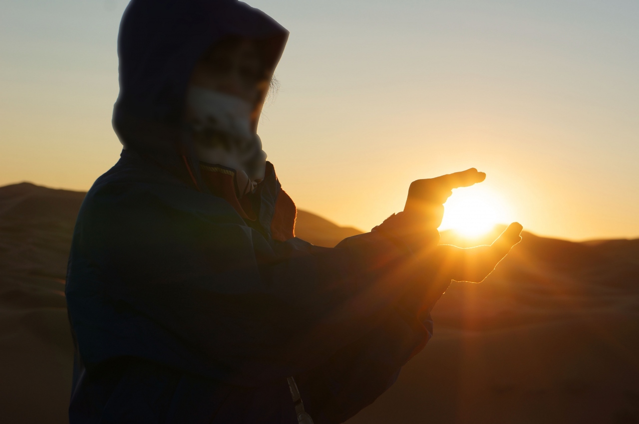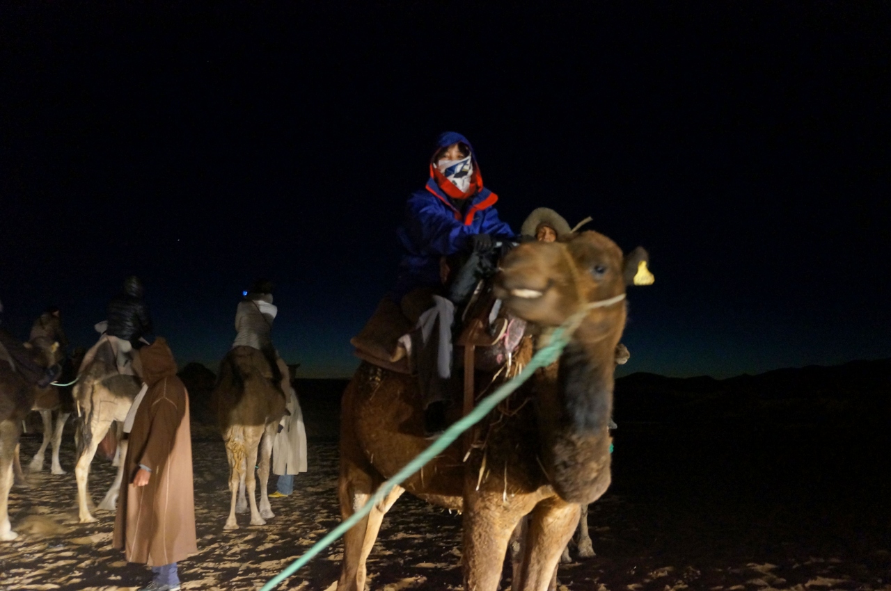 1月の砂漠は冷え込みが強く、だんだんと足が冷えてきます。