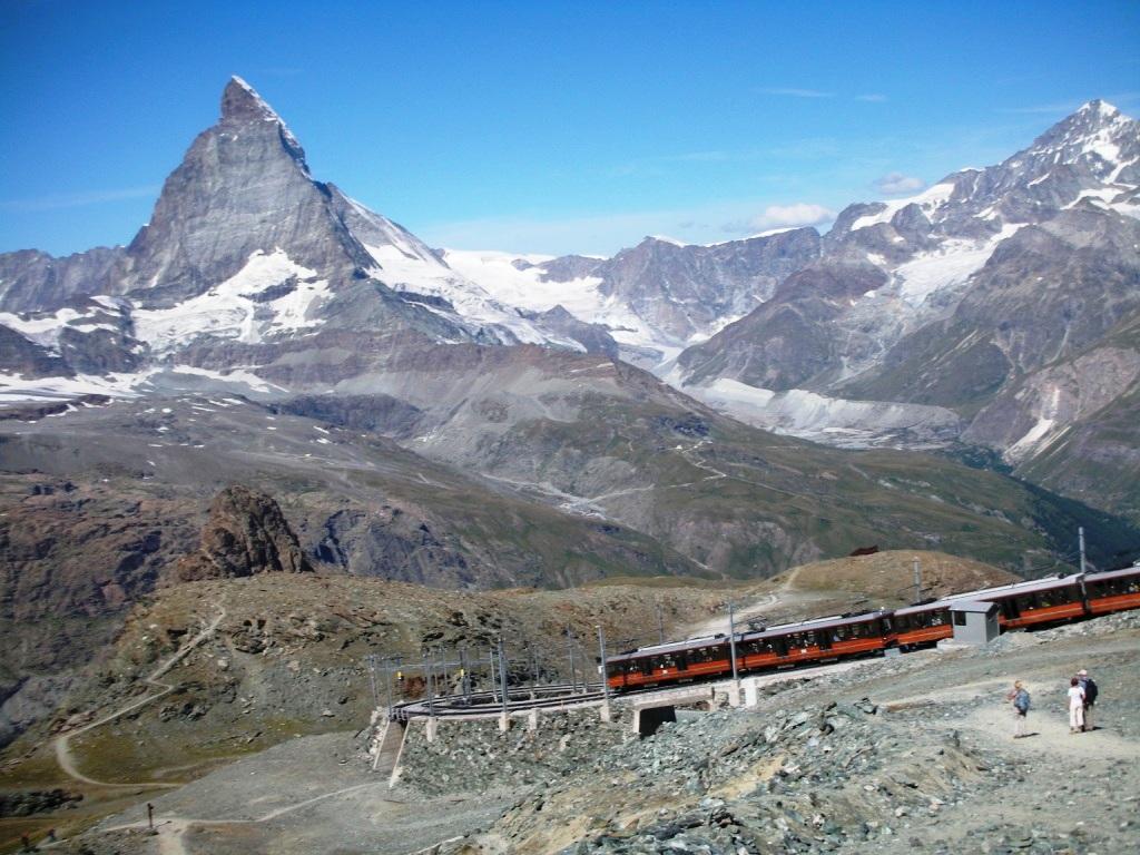 ツェルマット中央駅の真ん前にある、ゴルナーグラート登山鉄道駅から乗車します。乗車料金は、スイスパス持参なので半額でした。終点のゴルナーグラート駅までは出発から40分ほどです。鉄道はアプト式ラックレールにより、標高差約1,500mを駆け登ります。