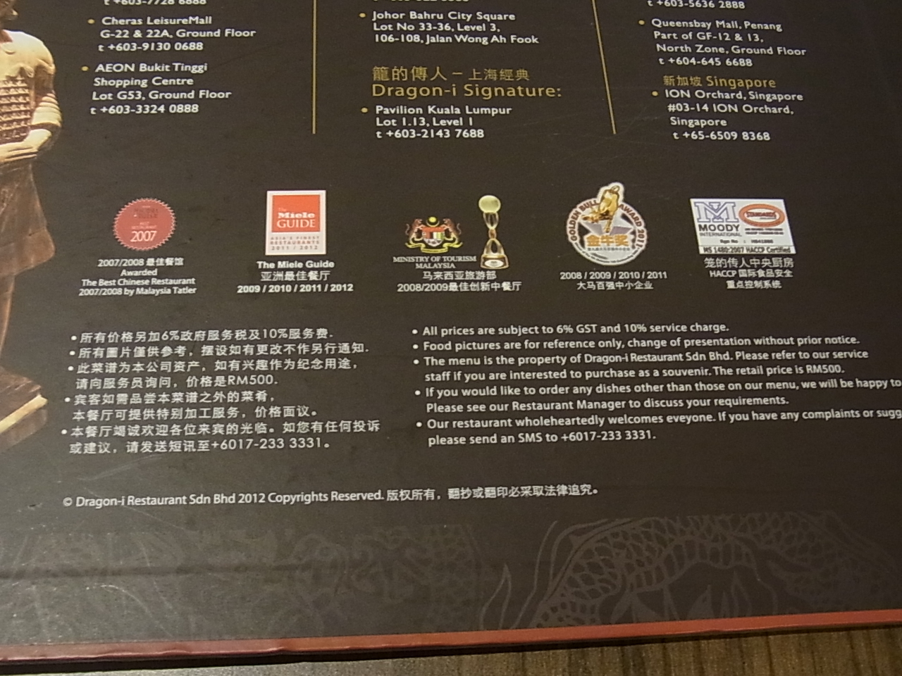 メニューにも、数々の賞を受賞した経歴が載っていました。