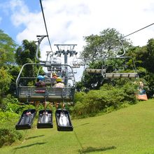 リュージュ & スカイライドに乗りました。スカイライドというリフトに乗り、丘の上まで行き、そこから下り道をエンジンのないハンドルを前に倒すと動き出すシンプルな物でした。上に行くまでのスカイライド(リフト)が高所恐怖症の人にはきついかもしれません。(自身は怖かったです)。リュージュそのものは単純に楽しめます。