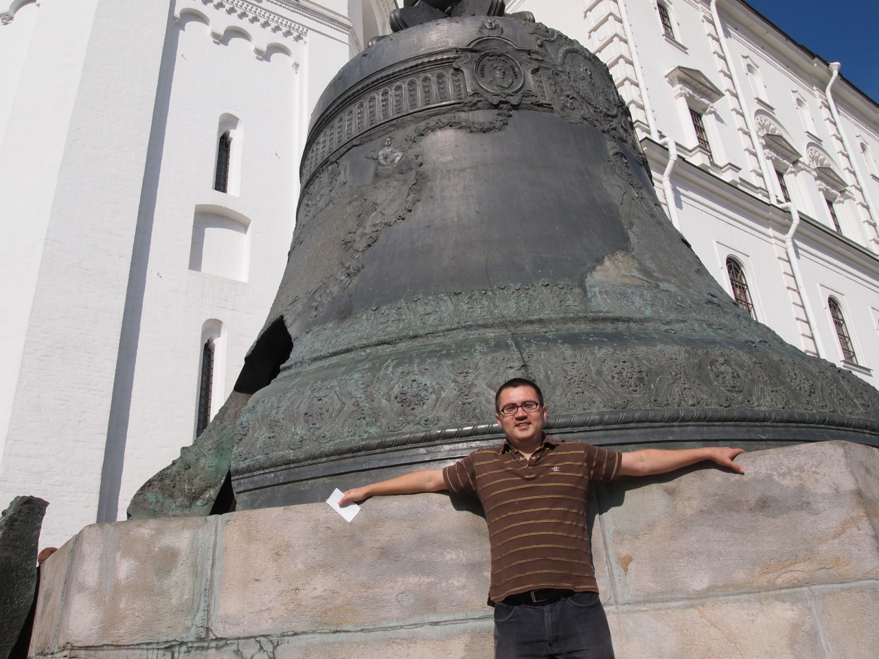 クレムリン内でちびっこたちからも大人気、世界最大の鐘「鐘の皇帝」。我が友ハミッドと比べてもその巨大っぷりが分かります。向かって左側が派手に欠けているのは鋳造中の火事で水をかけてしまったため、とか。クレムリンでは何でもかんでもでっかいので自分が小さくなった気分に。