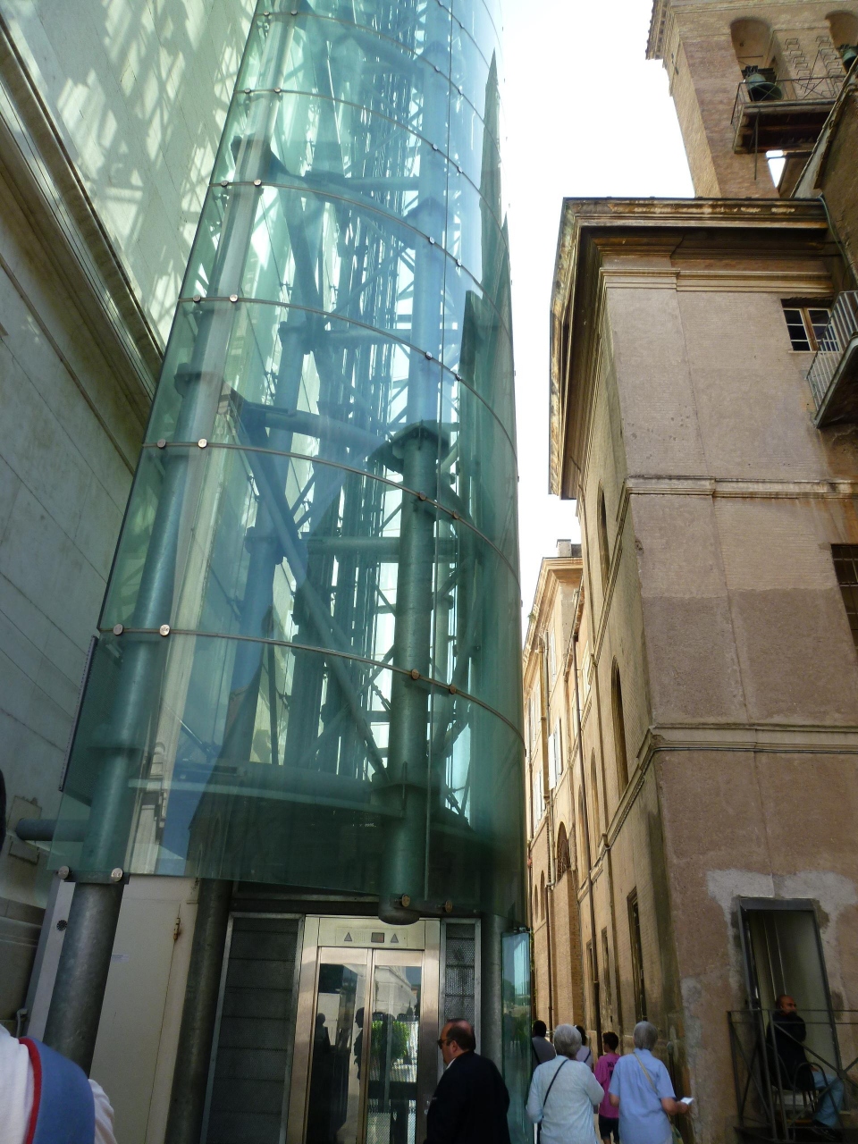 中は無料で見学できますが、裏側にエレベーター(7ユーロ:お釣りのないようにしたほうが良い)があり屋上へ行くことができます。