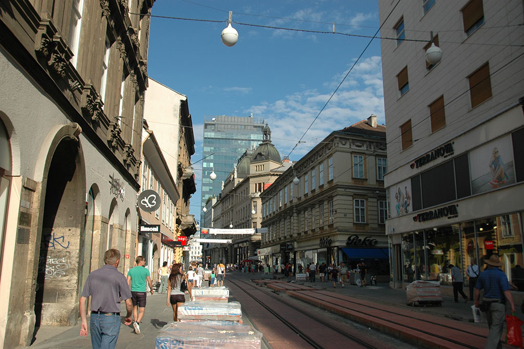 他国の首都の目抜き通りのようにブランド品店が軒を連ねるというわけではありませんが、それなりににぎやかで、ぶらぶら歩くには楽しい通りです。市電がのどかな雰囲気に一役買っています。2012年の夏は結構あちこちで工事をしていました。まだまだこれから整備が進むのかもしれません。