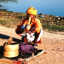 2月の乾季の時期はジャル・マハル湖の水量が少なくなるため、最下部を除いたマハラジャの宮殿全体を見ることができました。雨季の季節には水位が上がり、宮殿の最上部からしか見えないようです。