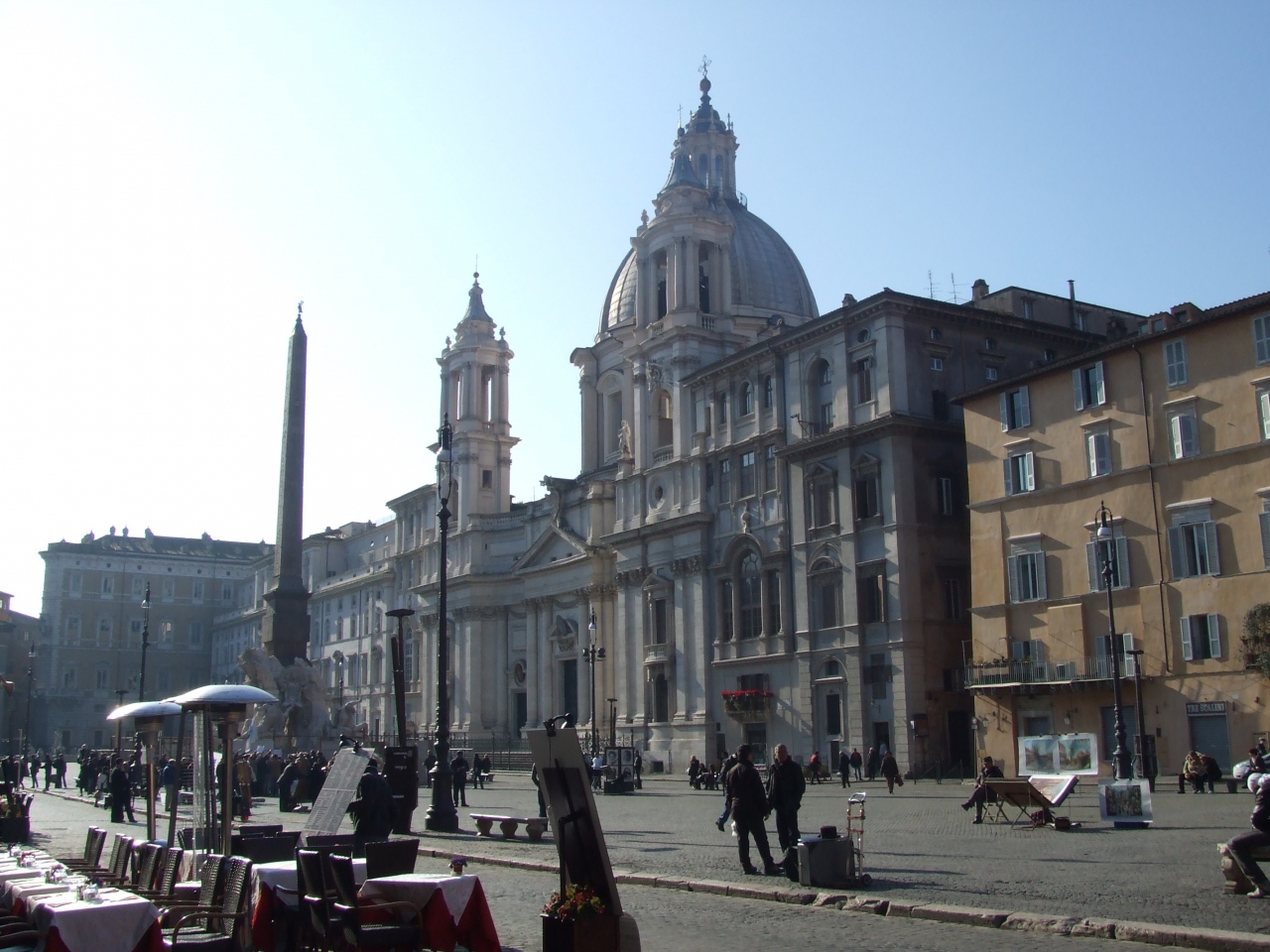 広場内にはオープンカフェもありましたが、1月の寒空の下では利用する気になれず。でも筋肉隆々で代謝の高そうな欧米人は普通にのんびりお茶していました。