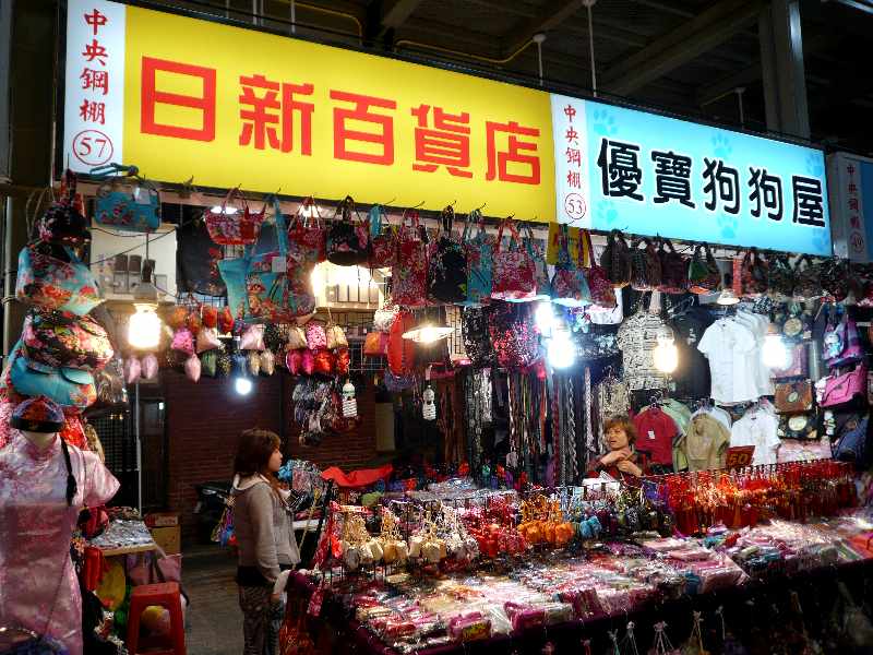 最後に、私が士林市場でお土産を買った店を紹介しておきます。アーケード棟の奥の方にある「57 日新百貨店」です。お土産用の布製品を中心とした商品を扱っている店で、チャイナドレス型キーホルダーが120元のところを値切って100元でした。香港では同種の商品がHK$10だったので、あまり安くは感じません。大陸の安価な商品が流入する香港と比較するのはフェアではないと思いつつも、あまり沢山は買う気にはならず、紅白をペアで買いました。