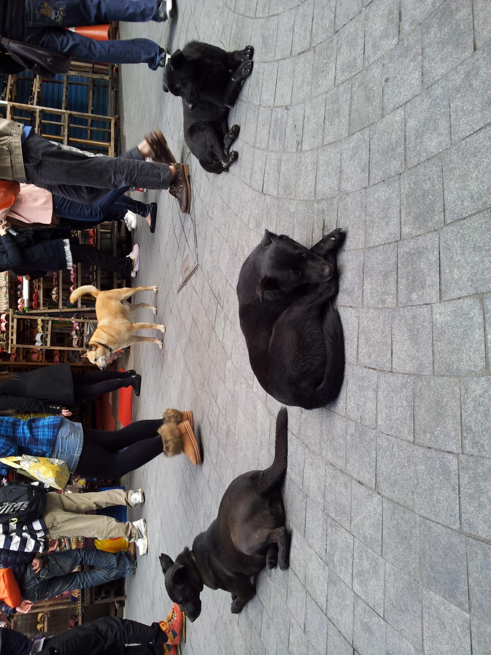 犬が放し飼いされていて、道幅でゴロゴロ寝てました。