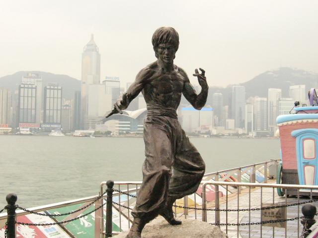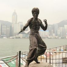 ここでの撮影スポットは、ブルースリーのブロンズ像で、皆さん同じポーズで撮影しています。