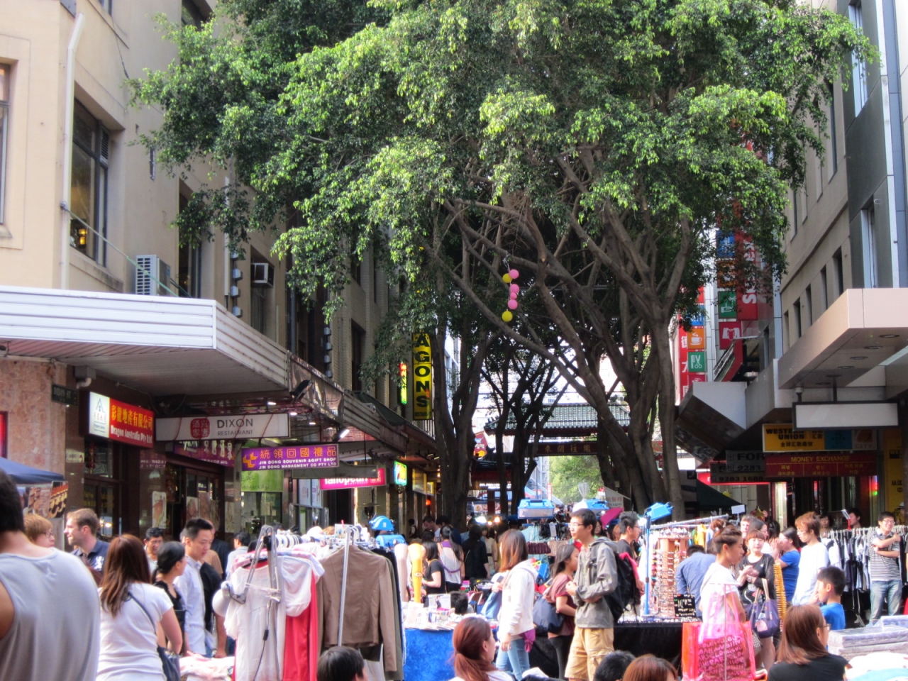 メインストリートのディクソン通りは歩行者天国になっていて、道路上にも露店が溢れていました。