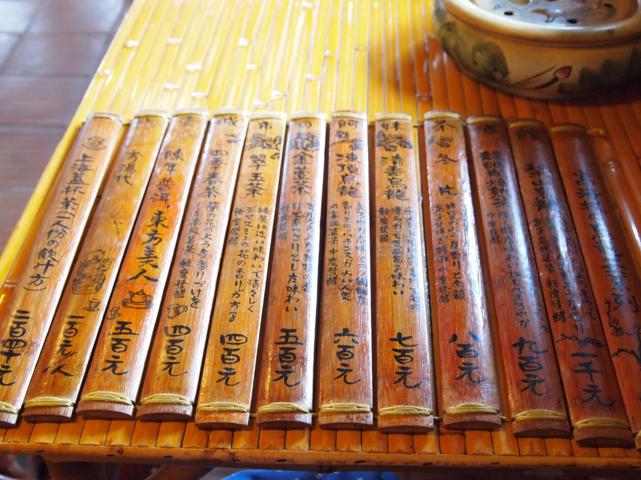 日本語メニュー完備で安心です。「四季春茶」400元(+お湯代100元)、ジャスミン茶葉入り揚げ菓子80元を頼み、のんびり本を読んだり、撮った写真を見たり、ぼーっと窓の外の海を眺めたりしながら過ごしました。
