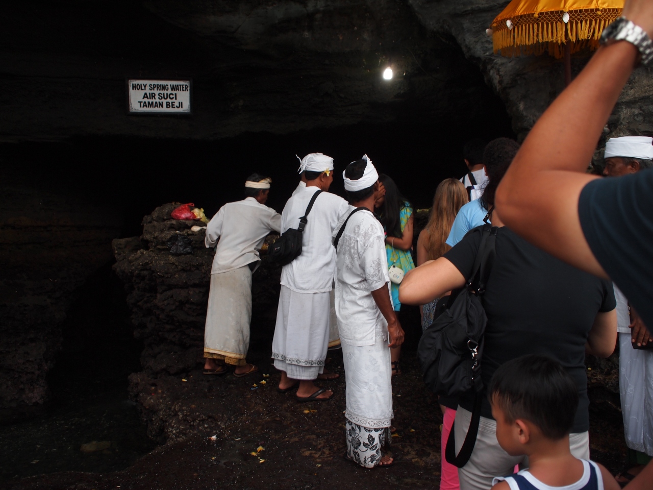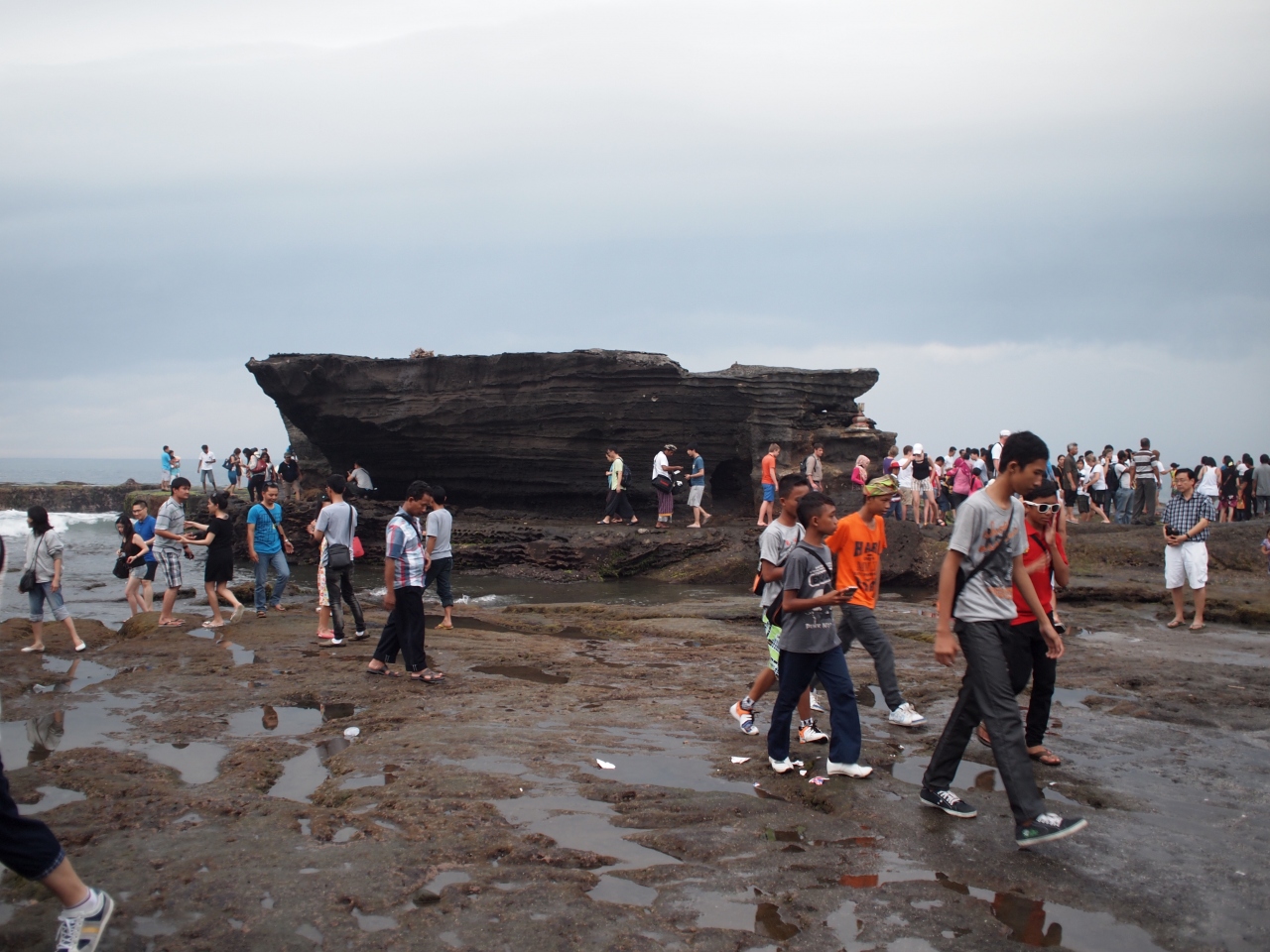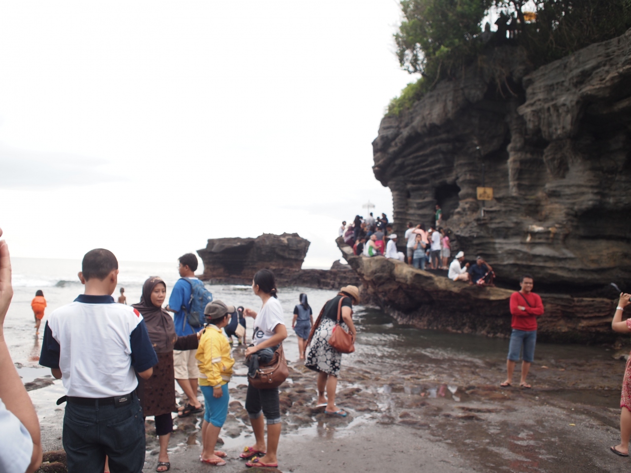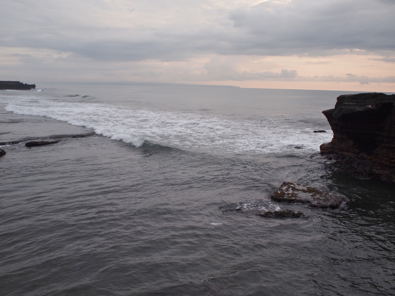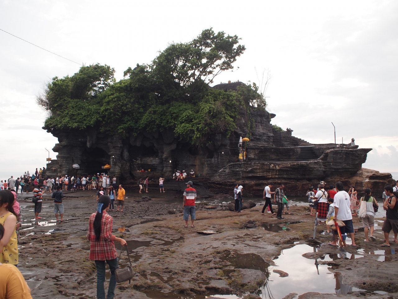 夕日の名所として有名な海岸の寺院ですが、私達が訪れたのが雨期だったため、全然夕日は見えず、天気も悪かったです。楽しみのケチャダンスが中止になってがっかりしている団体ツアーもありました。でも海の中の岩島にある寺院はモン・サン・ミシェル修道院のようで(干潮なら歩いてわたれます)、神の化身である黒い蛇が住むという洞窟もあり、海の景色も面白く、なかなか見応えがありました。