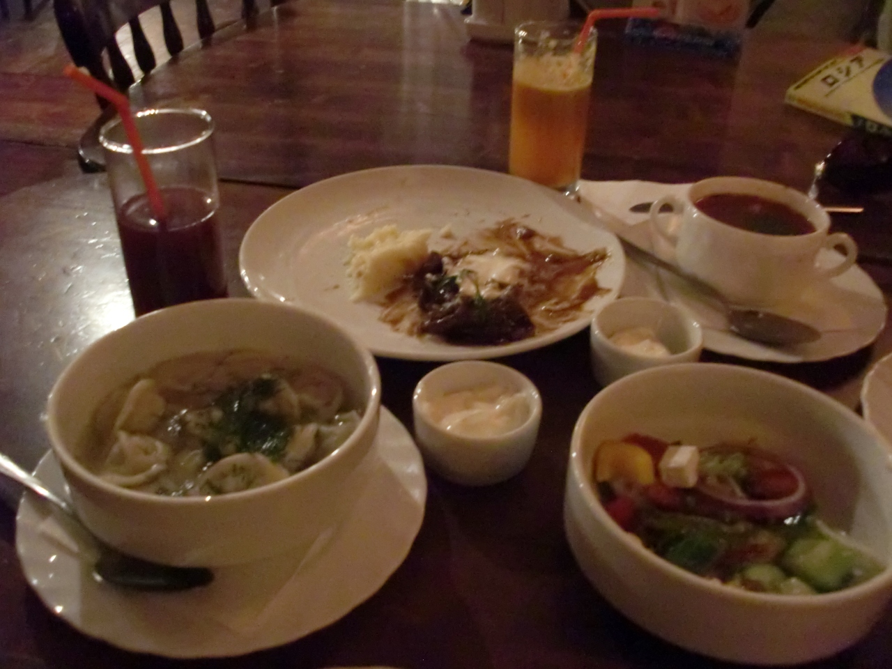 ロシア料理の定番、ボルシチもビーフストロガノフもみんなあります。