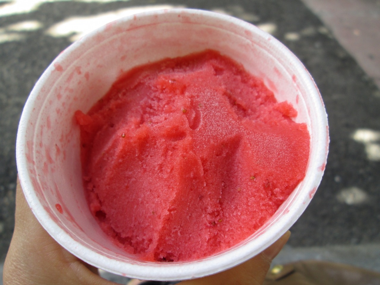 なかなかお店を見つけることが出来なかったので、道にあった案内所のおばさんに聞いたところ、ひとつ隣の道を探していたみたいです。名物のシャーベットでかいです。でもあまりにおいしかったので一人でペロリと食べれました。サンドイッチも人気みたいです。次回はチャレンジしたいと思いました。