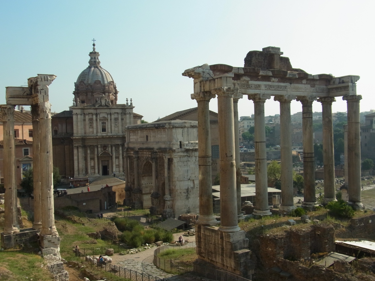 古代ローマでは、たいていの都市に政治・宗教の中心としてフォルム(フォーラムの語源)と呼ばれる広場が置かれていましたが、このフォロ・ロマーノは首都に開設された最初のフォルムであり、最も重要な存在だそうです。
