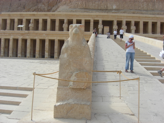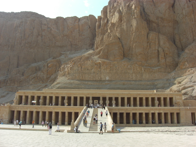 建物も柱も像もすべてが大きくてびっくりします。女王でこんなに権力を持っていたのか、と感心します。また、エジプトの他の遺跡にはない独特の造りをしていると思います。文字もわりと残っていました。像と同じポーズで写真を撮るのが定番みたいです。