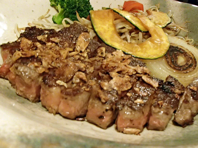 一押しは激うまステーキ。よそで食べたら35ドルでも安いと評されそうなリブアイステーキがなんと26ドル(大盛どんぶり白米付)。寿司系和食の店で意外に思われるかもしれないが、ここのステーキはマジうまい。