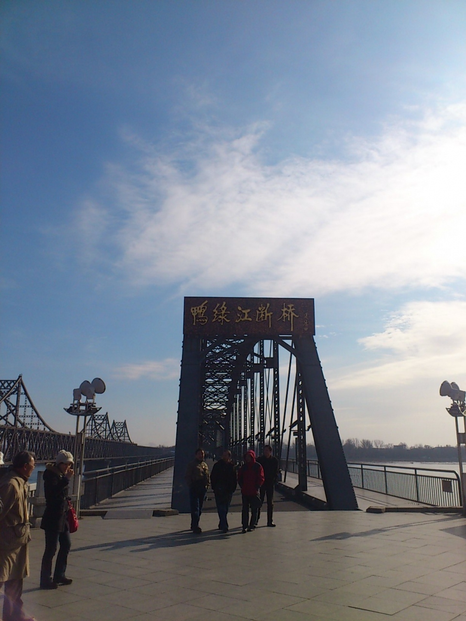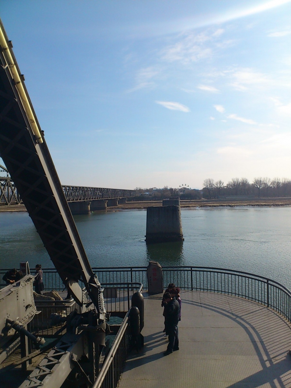 普通の橋の横に、朝鮮戦争の際に破壊された旧橋があり、川の真ん中まで歩いて渡れるようになっており、ちょっとした観光名所になっています。殺伐としたイメージを連想されるかもしれませんが、北朝鮮グッズを日本語交じりで売ってくる売り子の人もいたりしますし、なにより川の流れがゆったりしていて、本当にのどかな場所です。