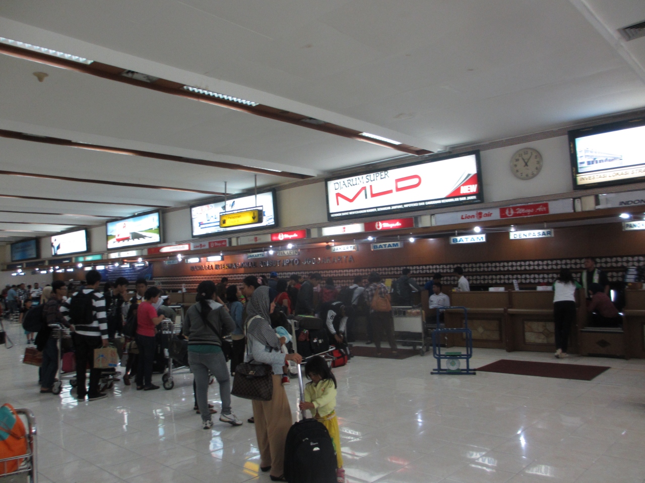 僕は、ジョグジャカルタ市内からバイクをチャーターして空港に行きました。公共バスだと市内から2千ルピアで空港に行くことができます。電車も空港近くに停まります。