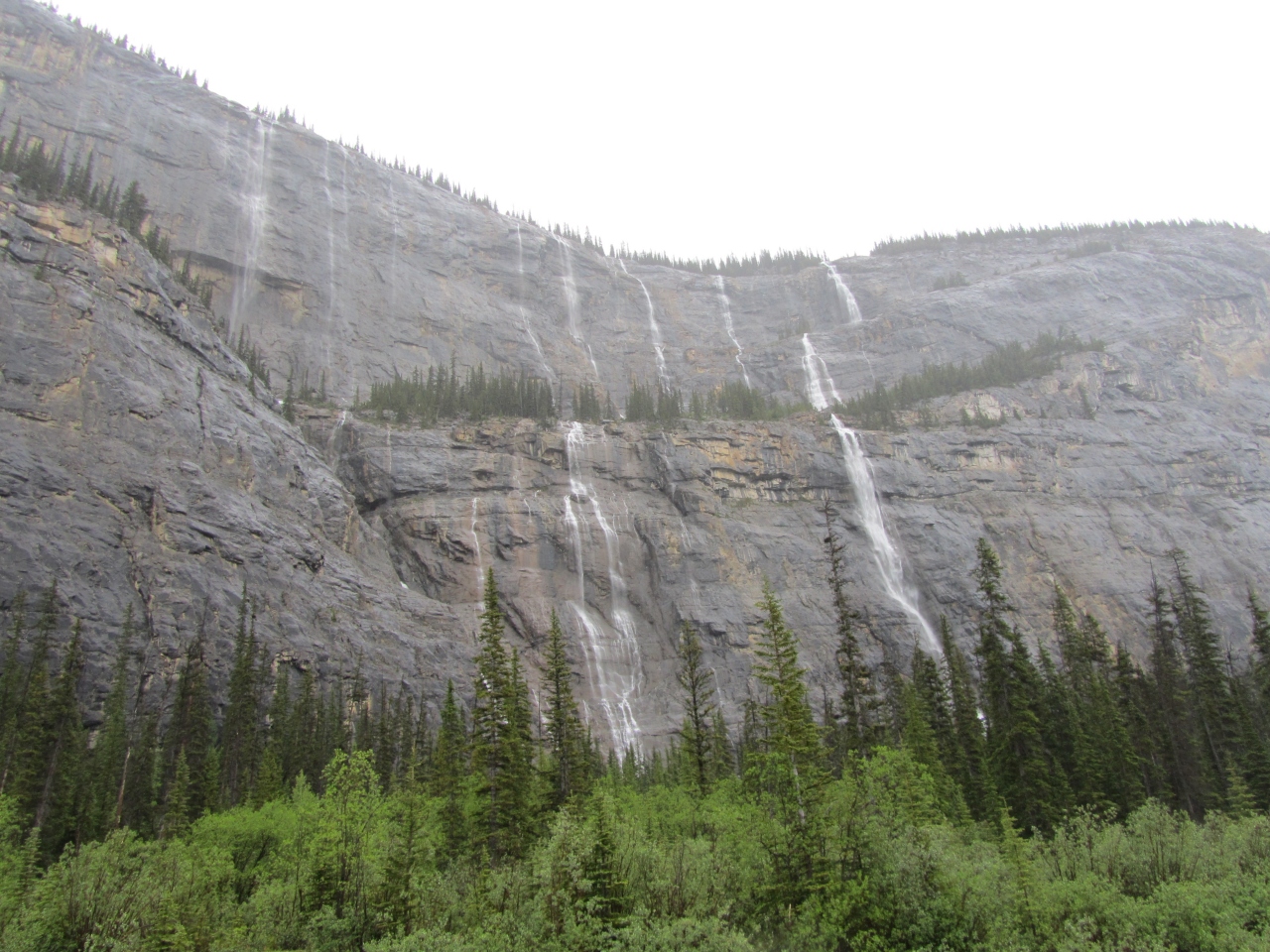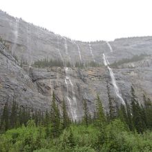 垂直に切り立った岩から雪解け水などが流れ落ちているスポット。